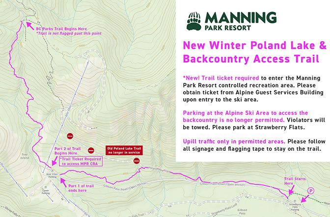 The last part of the trail begins at the North end of our operating area, where the BC Parks trail begins to Poland Lake. The last section of this trail is not marked.